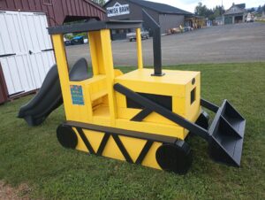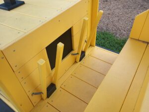 Kids will have all the fun on this Poly Bulldozer in Marker Yellow and Black. With spring-loaded ‘joysticks’ and a slide out the back, they can pretend to be on any work site they can imagine.