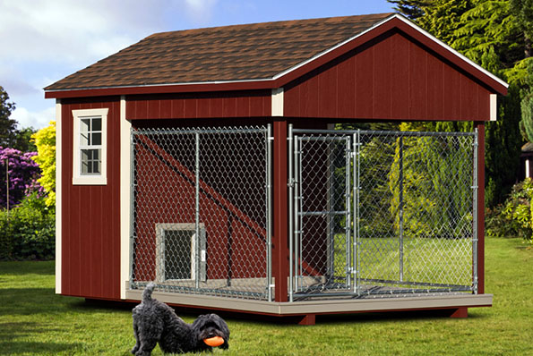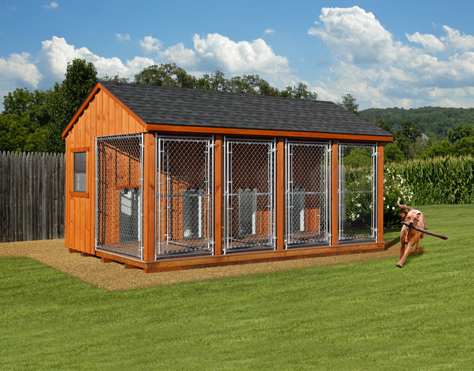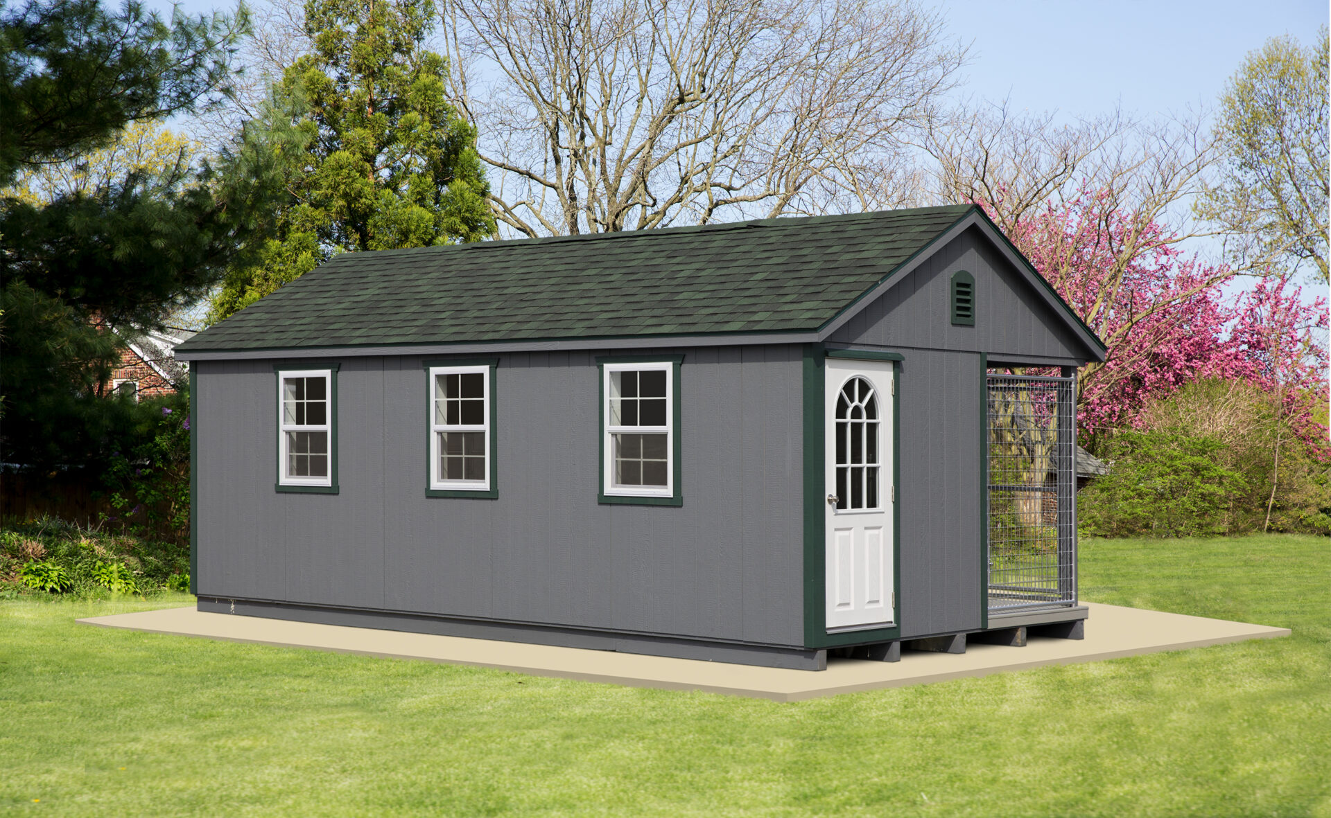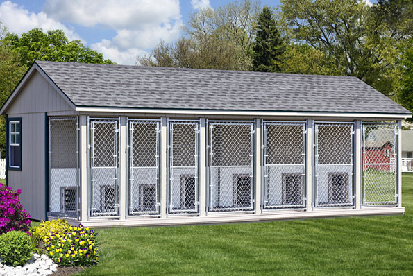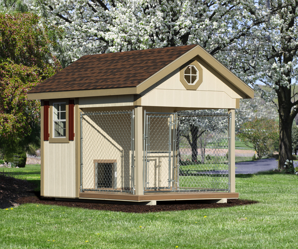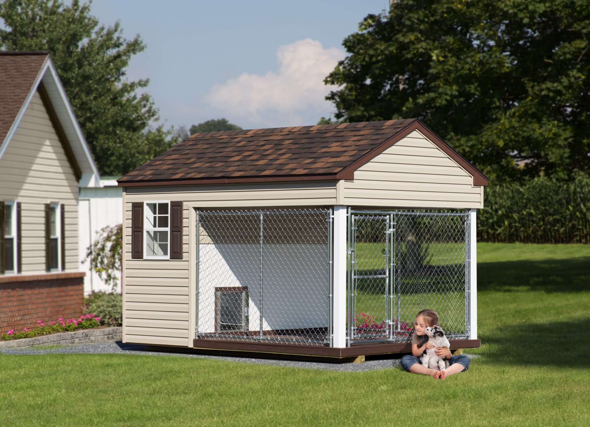 Amish Barn Company Residential and Commercial Dog Kennels feature large plexiglass dog doors, composite decking in the run area and insulation in the walls, floor and ceiling to keep your dogs extra cool. And we now offer Nationwide shipping! Visit our stock page to see what we have available right now for free delivery within 100 miles or stop in to customize yours today, before you end up in the DOG HOUSE!