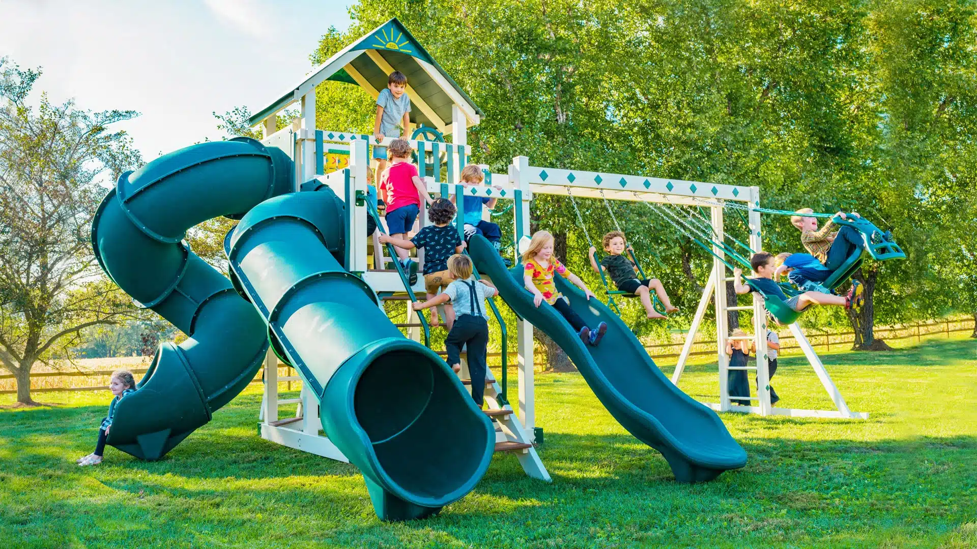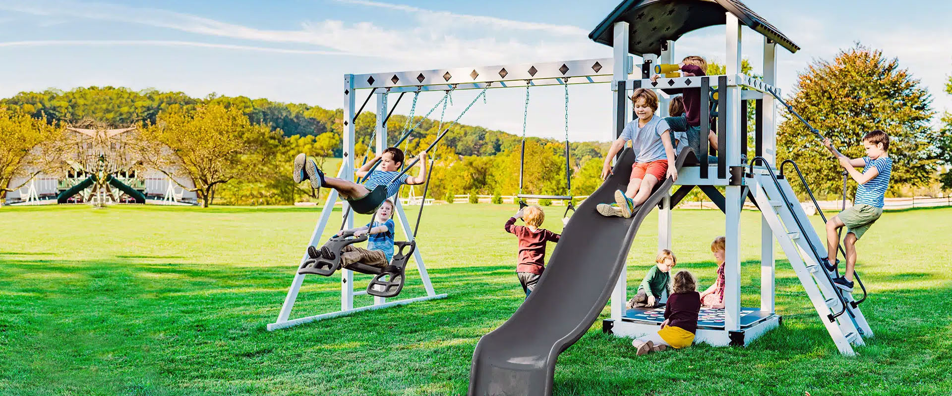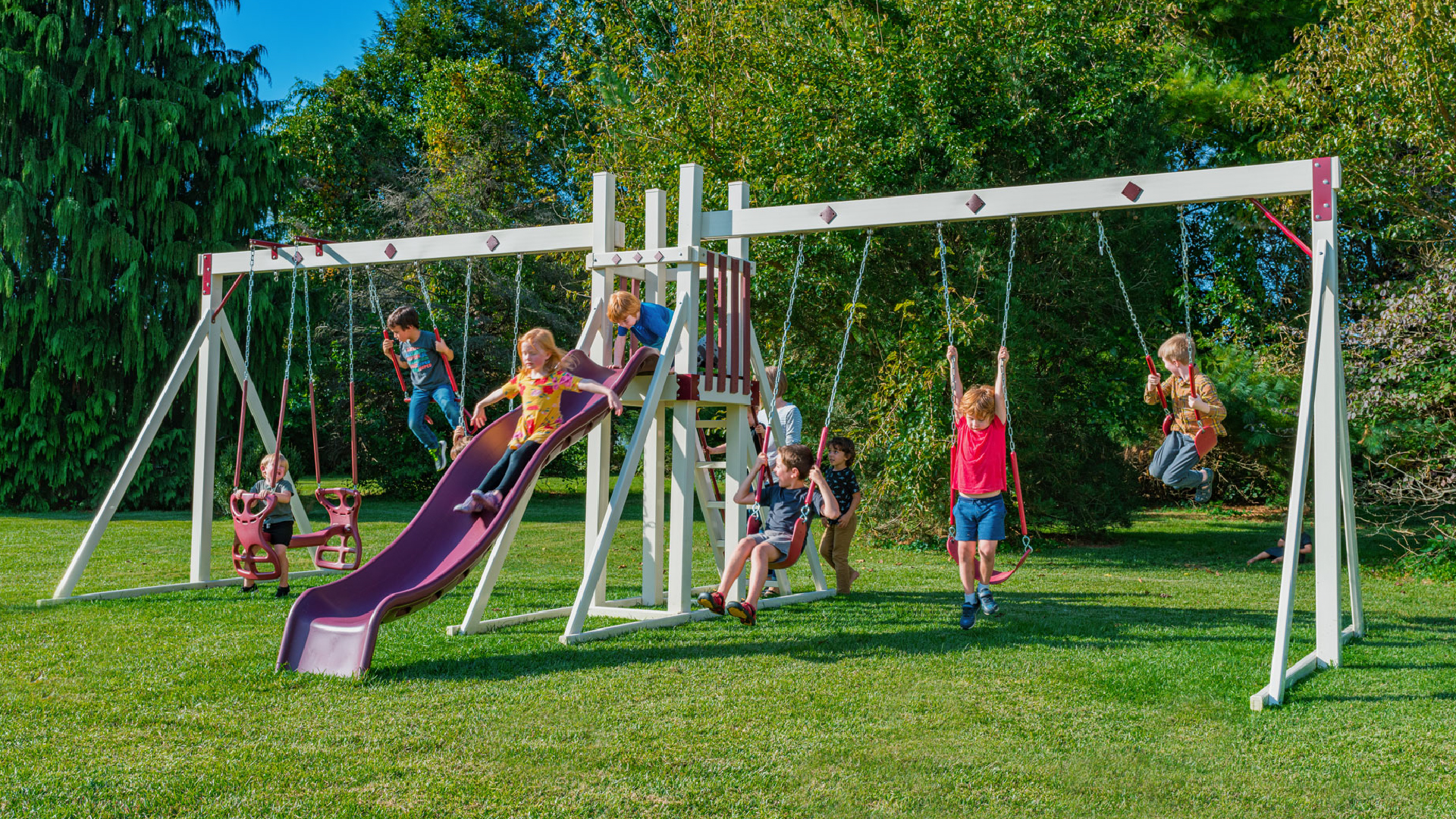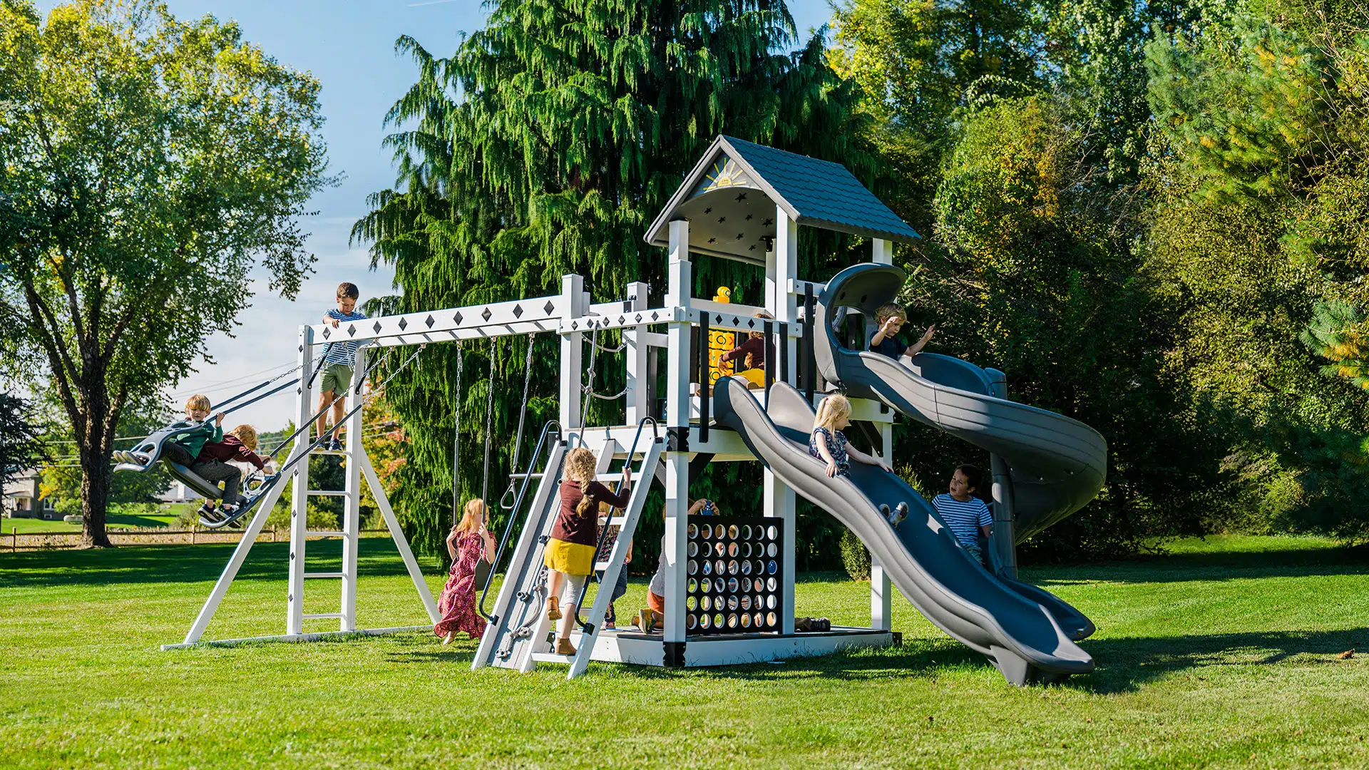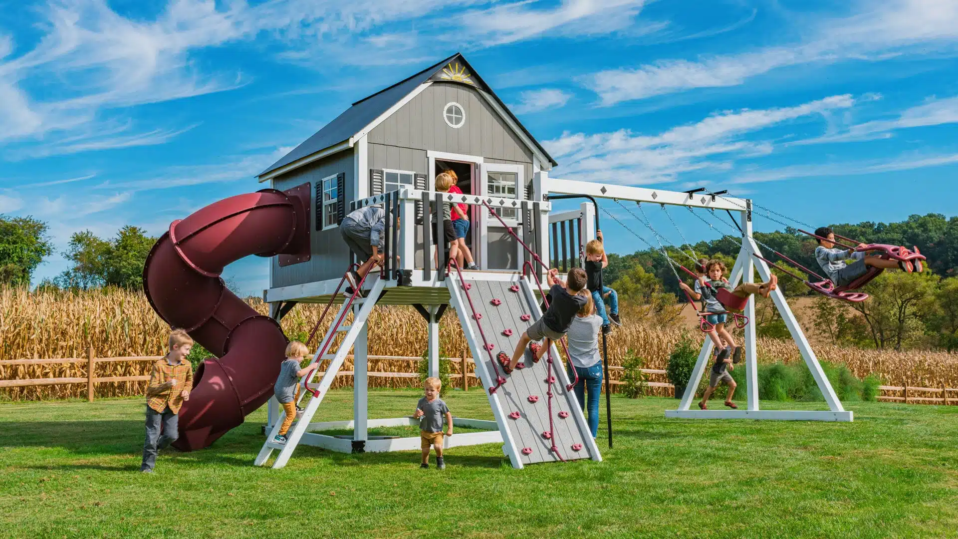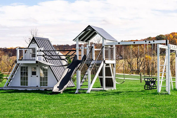 Get ready to spark your child’s imagination with an amazing Amish crafted swing set or playhouse from Amish Barn Company. Endless hours of outdoor fun are as easy as 1…2…3… SWING! When putting up a swing set in your backyard you will be glad you went with our amazing vinyl products that offer countless options of fun. Or play house in one of our adorable playhouses designed for fun with the bonus of additional storage.