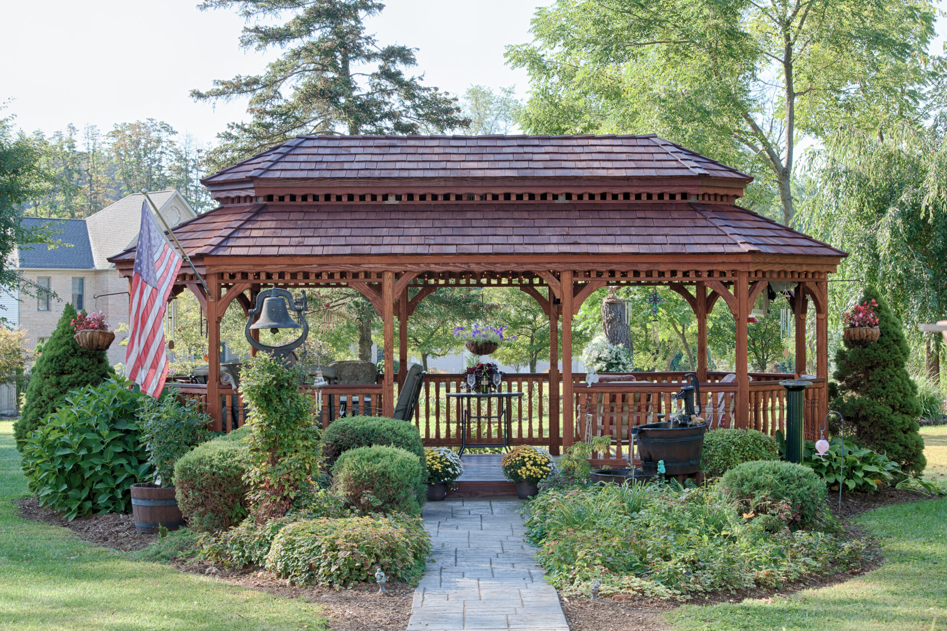 Amish Barn Company Pavilions and Gazebos come in kiln-dried, pressure treated, southern yellow pine, and vinyl which feature composite decking for a sleek and modern look. We offer premium materials for maximum strength and durability…and the ultimate relaxation experience. Amish Barn Company’s gazebos and pavilions are made for the shade! Visit our stock page to see what we have available right now for free delivery within 100 miles or stop in to customize yours today!